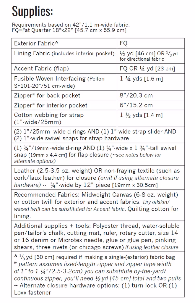 Mønsteret inkluderer mål og instruksjoner på hvordan du syr denne flotte vesken.