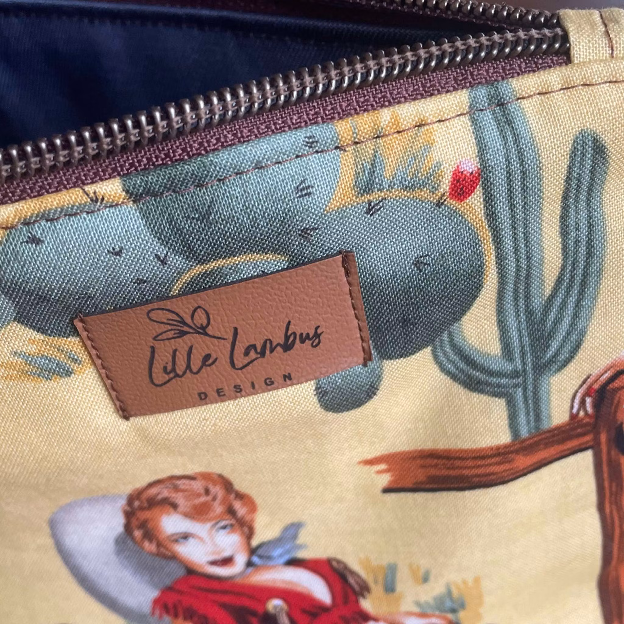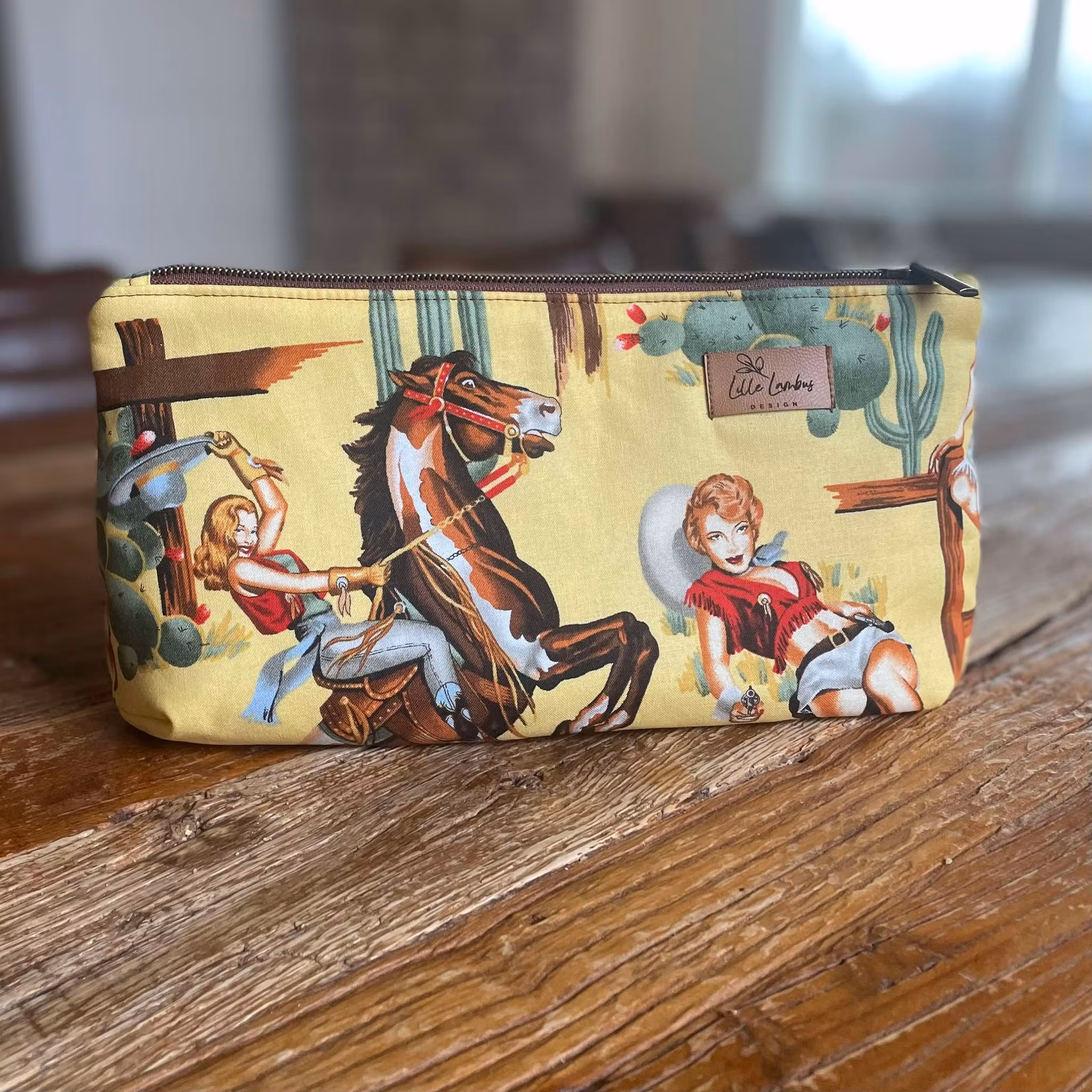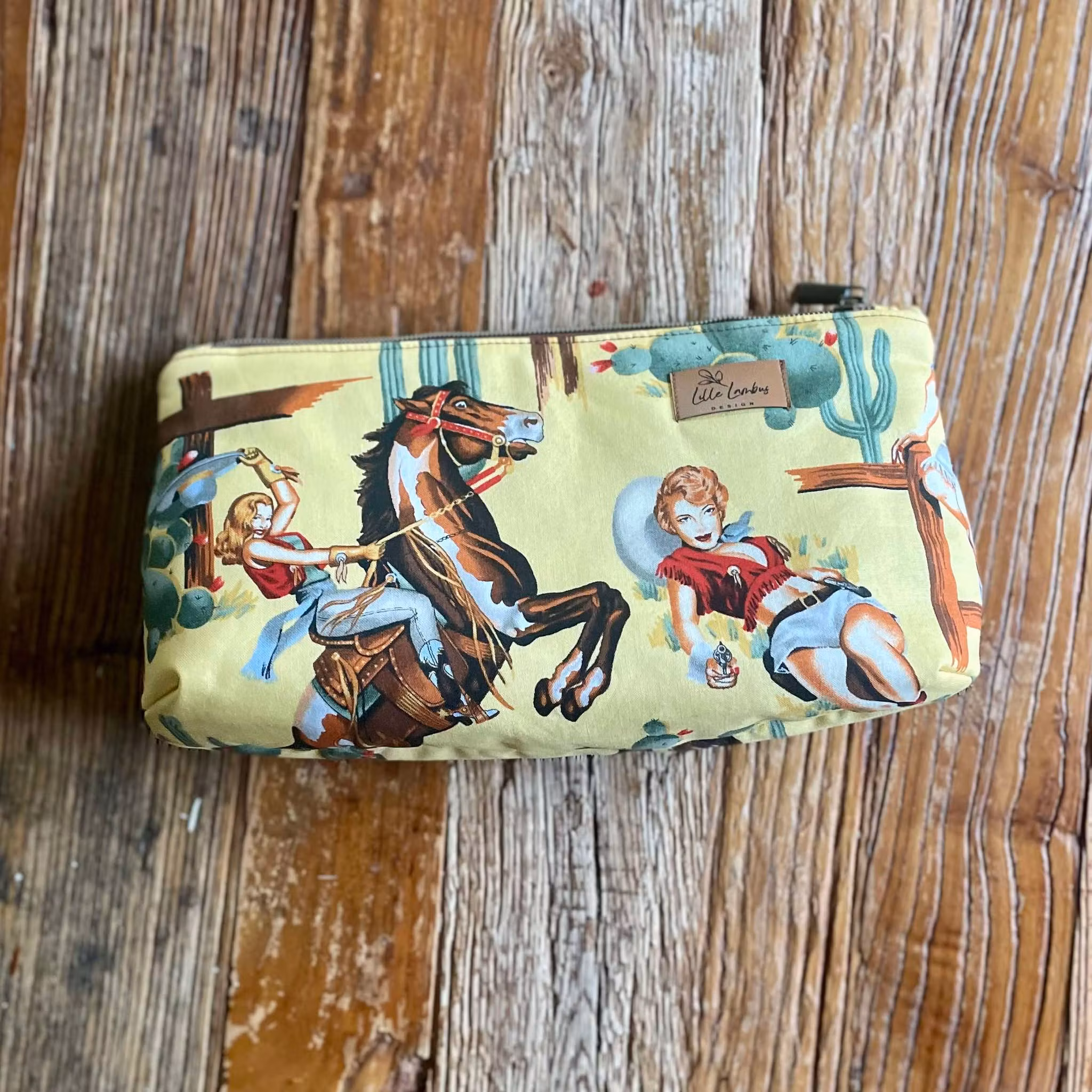 En lekker mappe med retro motiv som er praktisk til sminke, toalettsaker, strikketøy eller andre godsaker.
