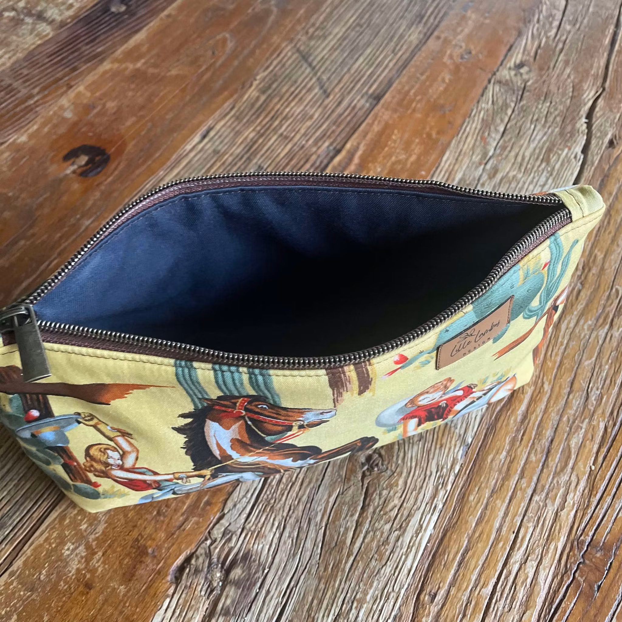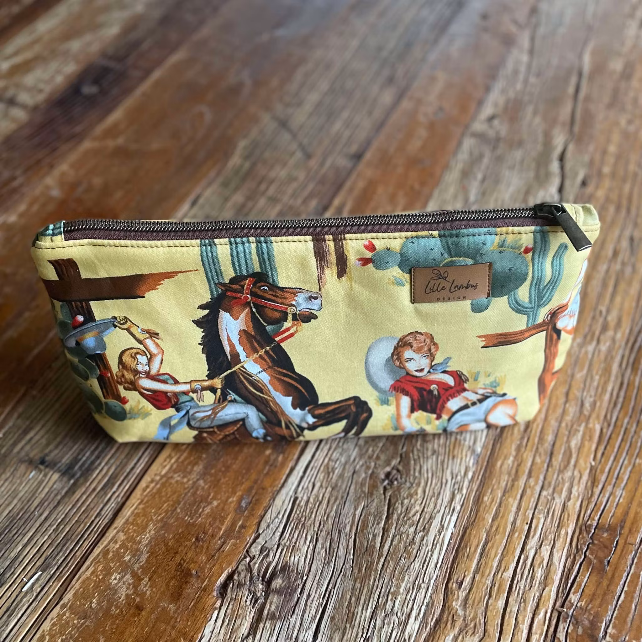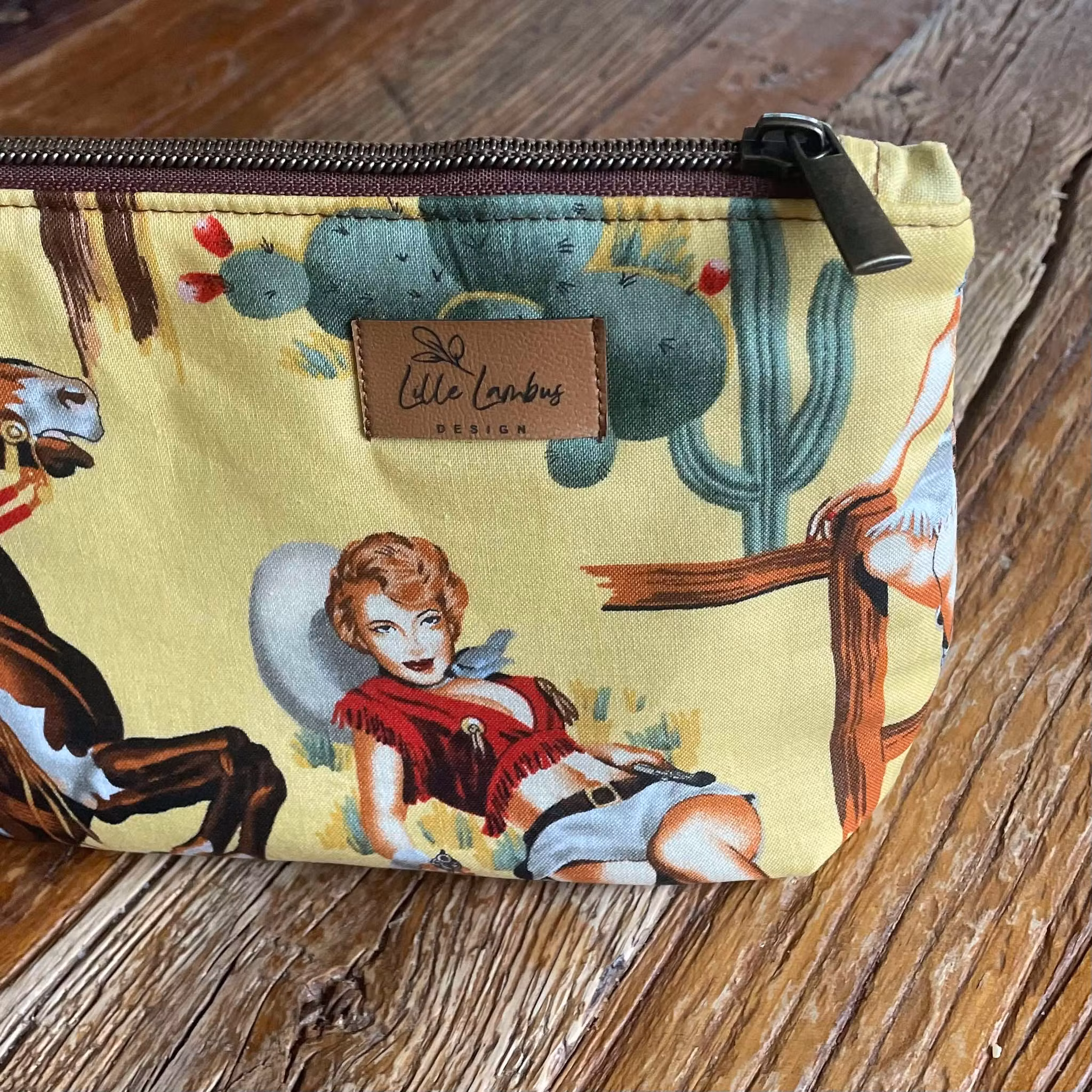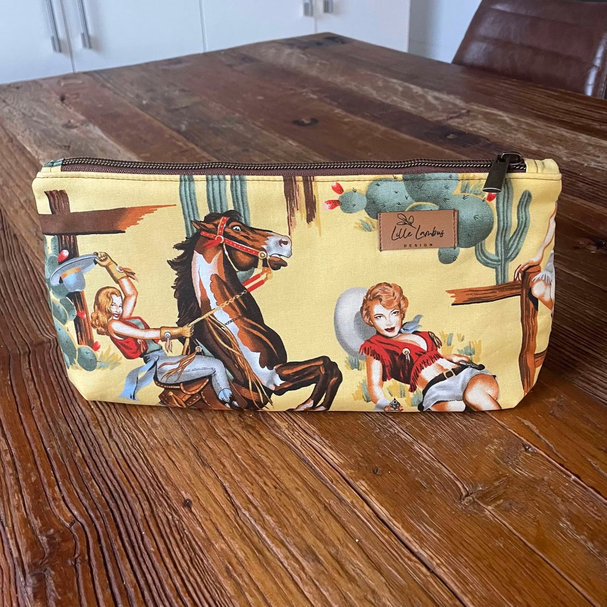 En lekker mappe med retro motiv som er praktisk til sminke, toalettsaker, strikketøy eller andre godsaker.