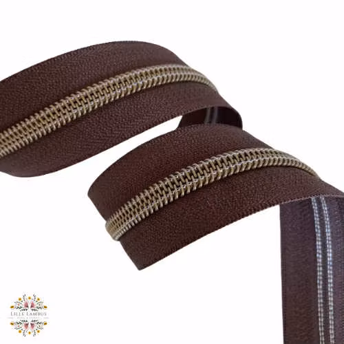 Nylon glidelås tape er ideell for vesker. I motsetning til metallglidelåser er nylontenner enkle å sy over uten å knekke nåler. Denne glidelåstapen har tenner i "metalllook", noe som gir den et mer luksuriøst utseende.