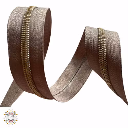 Nylon glidelås tape er ideell for vesker. I motsetning til metallglidelåser er nylontenner enkle å sy over uten å knekke nåler. Denne glidelåstapen har tenner i "metalllook", noe som gir den et mer luksuriøst utseende.