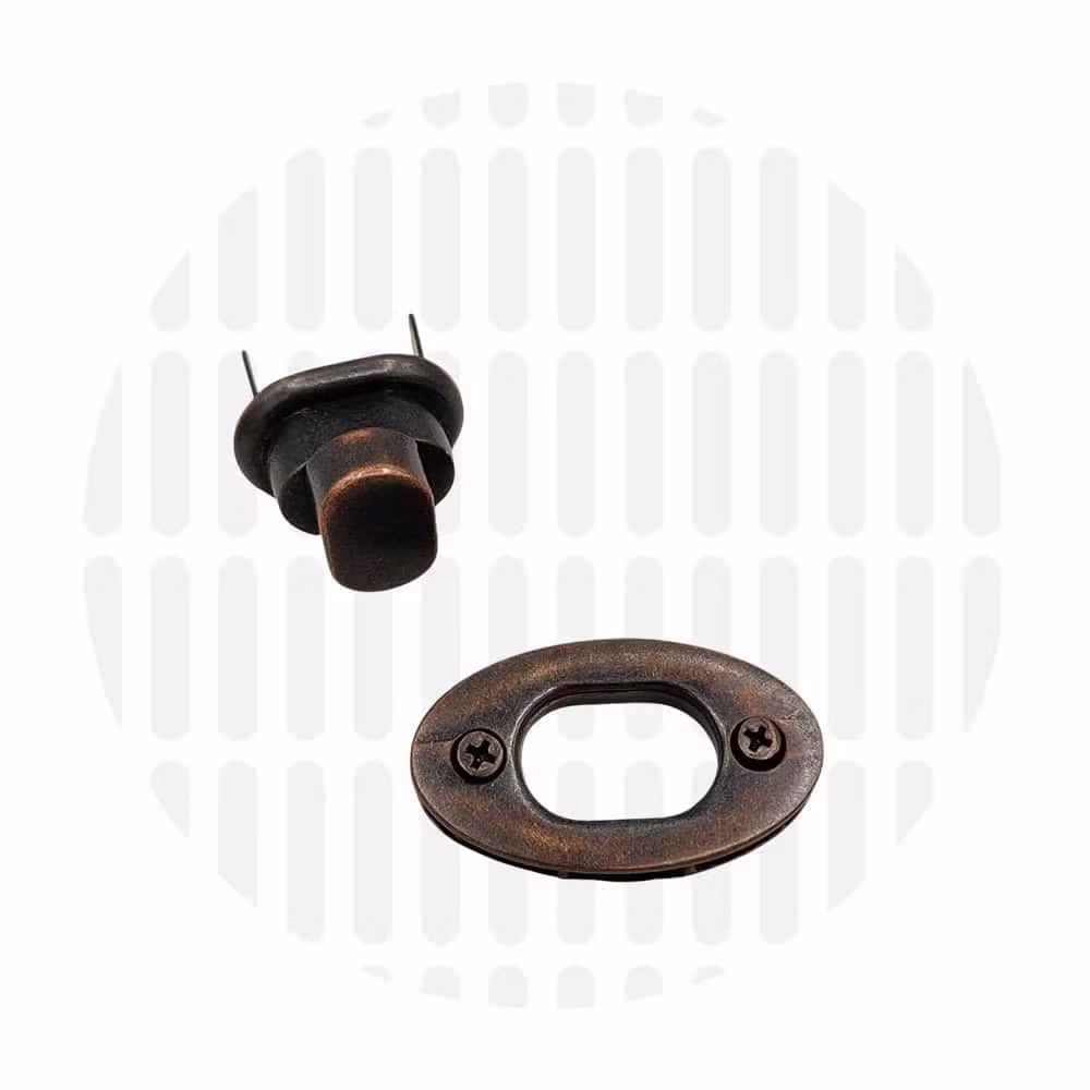 Denne klassiske ovale Kora-låsen gir en tidløs finish til vesker, lommebøker og bagasje. Laget av holdbare materialer med høy kvalitetsbelegg, tilbyr den både stil og pålitelighet. Monteres enkelt med inkluderte skruer.