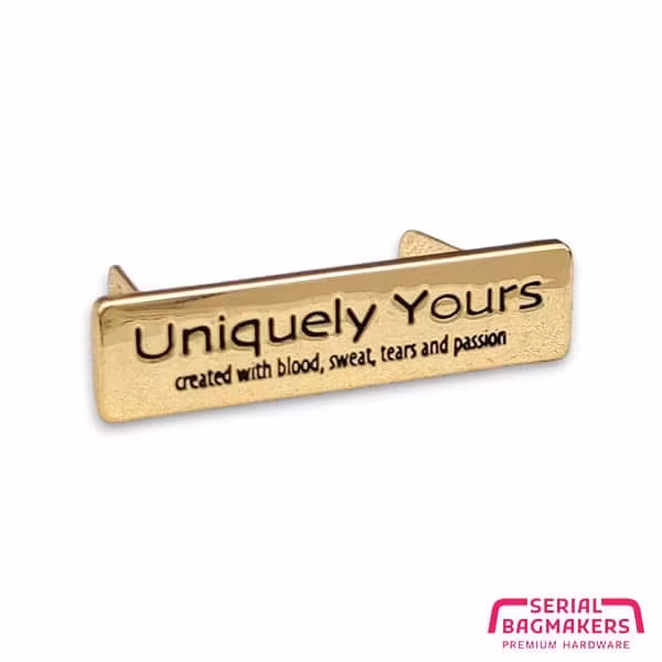 Nydelig metallmerke i Gull med skriften Uniquely Yours. Eksklusivt design av høy kvalitet.