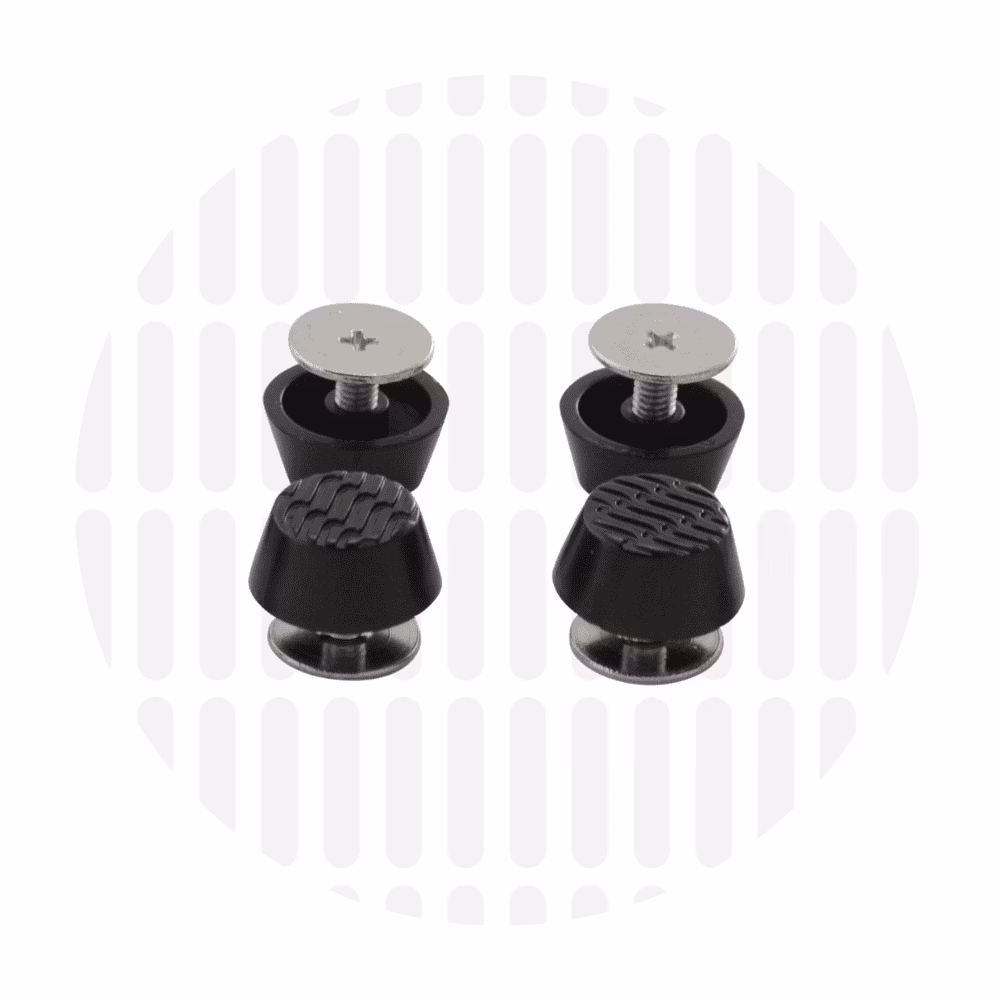 Veskeføtter som festes med skrue på innsiden av en veske.