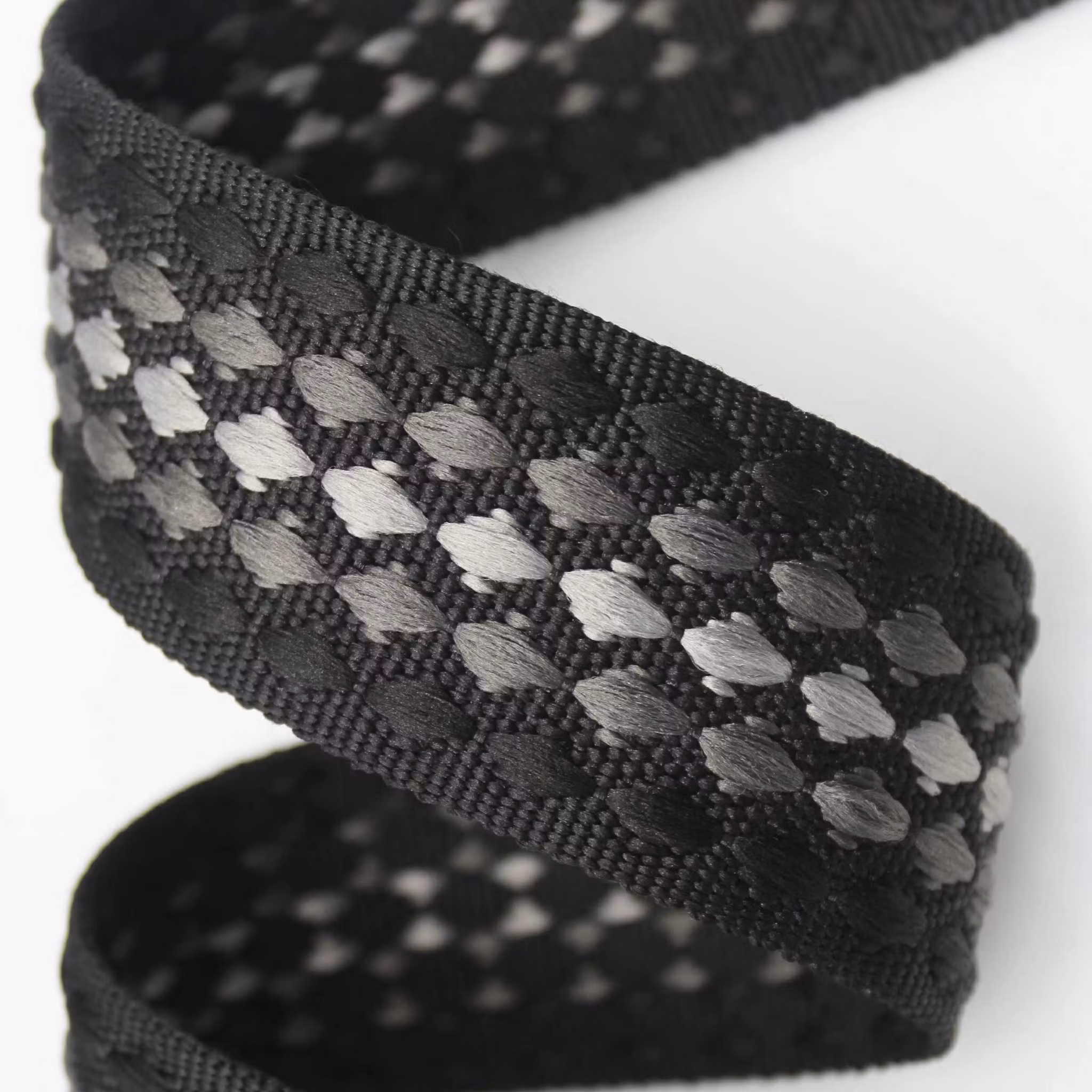 3,8 cm Jacquard Bånd - Perlesnor - Grå & Sort