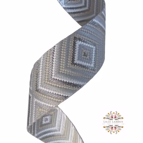 3,8 cm Jacquard Bånd - Grey & Silver