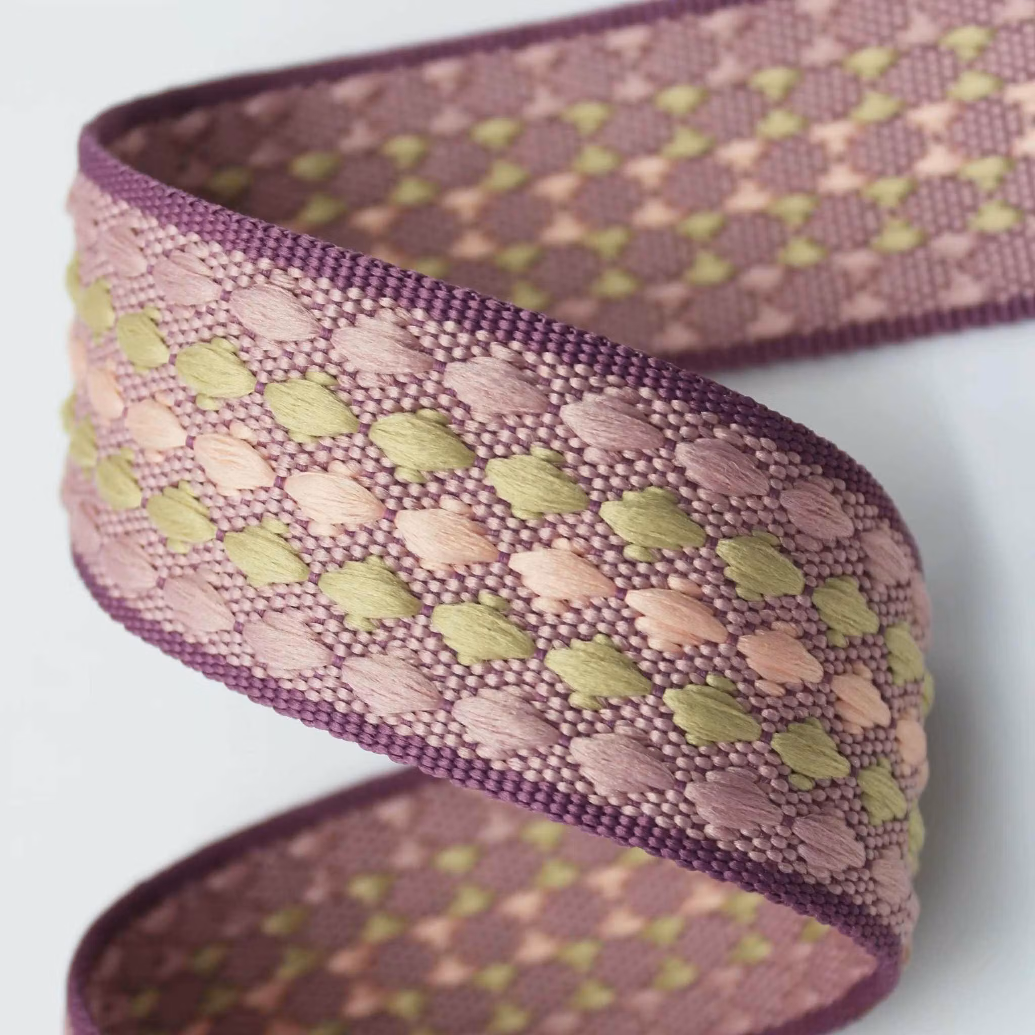 3,8 cm Jacquard Bånd - Perlesnor - Rosa Harmoni