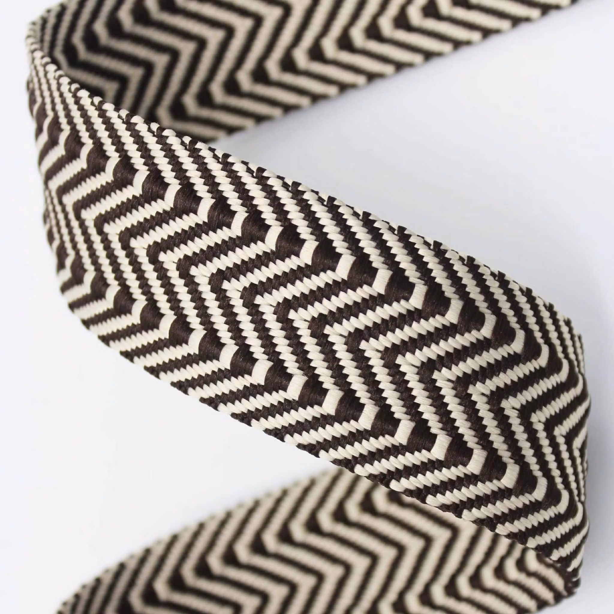 3,8 cm Jaquard Bånd - Herringbone - Mocca