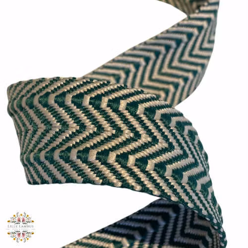 3,8 cm Jaquard Bånd - Herringbone - Skogsgrønn